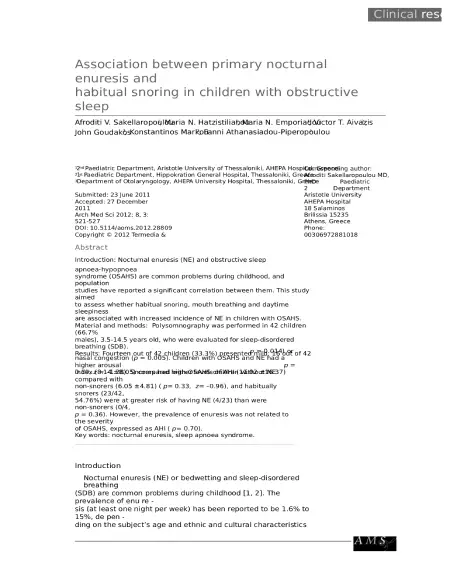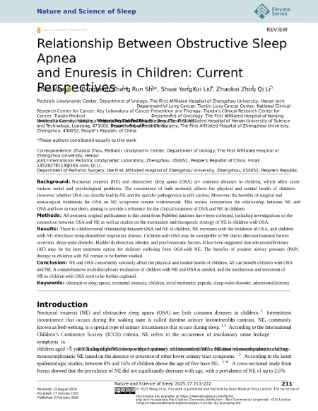 Relationship Between Obstructive Sleep Apnea and Enuresis in Children: Current Perspectives and Beyond