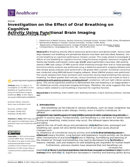 Investigation on the Effect of Oral Breathing on Cognitive Activity Using Functional Brain Imaging