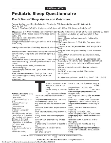 Obstructive sleep disordered breathing in 2- to 18-year-old children: diagnosis and management
