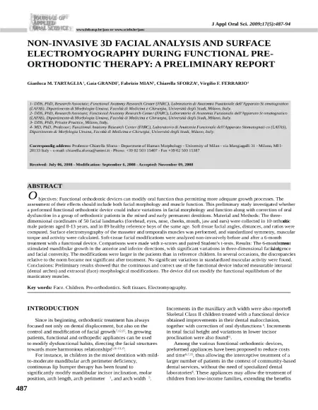 Non-invasive 3d facial analysis and surface electromyography during functional Pre orthodontic therapy: A preliminary report