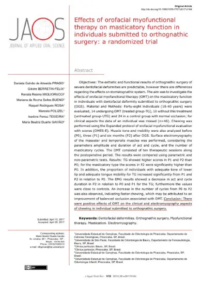 Effects of orofacial myofunctional therapy on masticatory function in individuals submitted to orthognathic surgery
