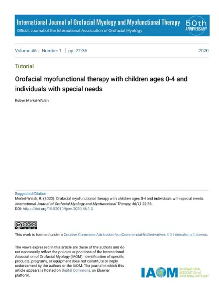 Orofacial myofunctional therapy with children ages 0-4 and Orofacial myofunctional therapy with children ages 0-4 and individuals with special needs